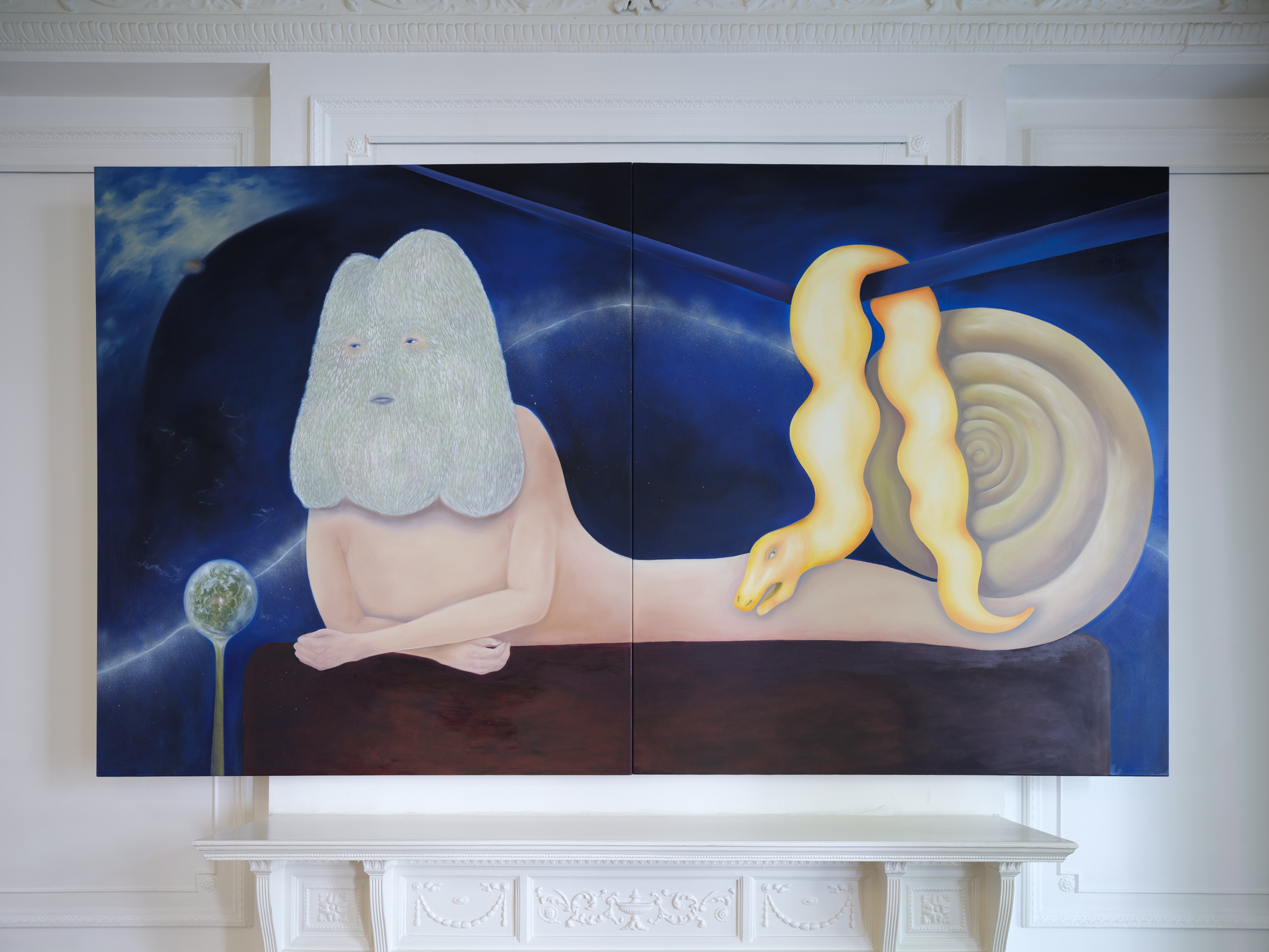 In his 1961 text ‘Truth Becomes Reality’, Yves Klein – whose inscription at the convent of Santa Rita de Cascia lends the exhibition its title – wrote that “It is not with rockets, Sputniks and missiles that modern man will achieve the conquest of space… It is by the means of the powerful yet pacific force of his sensitivity.” THE BLUE, THE PINK, THE IMMATERIAL, THE VOID reflects on the fear-inducing awe we experience in the face of limitless information and technology; the disorientating effects of urban architecture and our yearning for a return to spirituality and/or sensuality in the technological age. Many of the artworks puncture the banality that emerges as a byproduct of the technological sublime by highlighting wonder, weirdness, joy, intimacy or disgust; reminding us of the heterogeneity of the world, the richness of experience, and how art can be a microcosm of this – telling stories, offering an escape from reality, opening new possibilities and allowing us to ‘travel’ through looking, rather than moving.